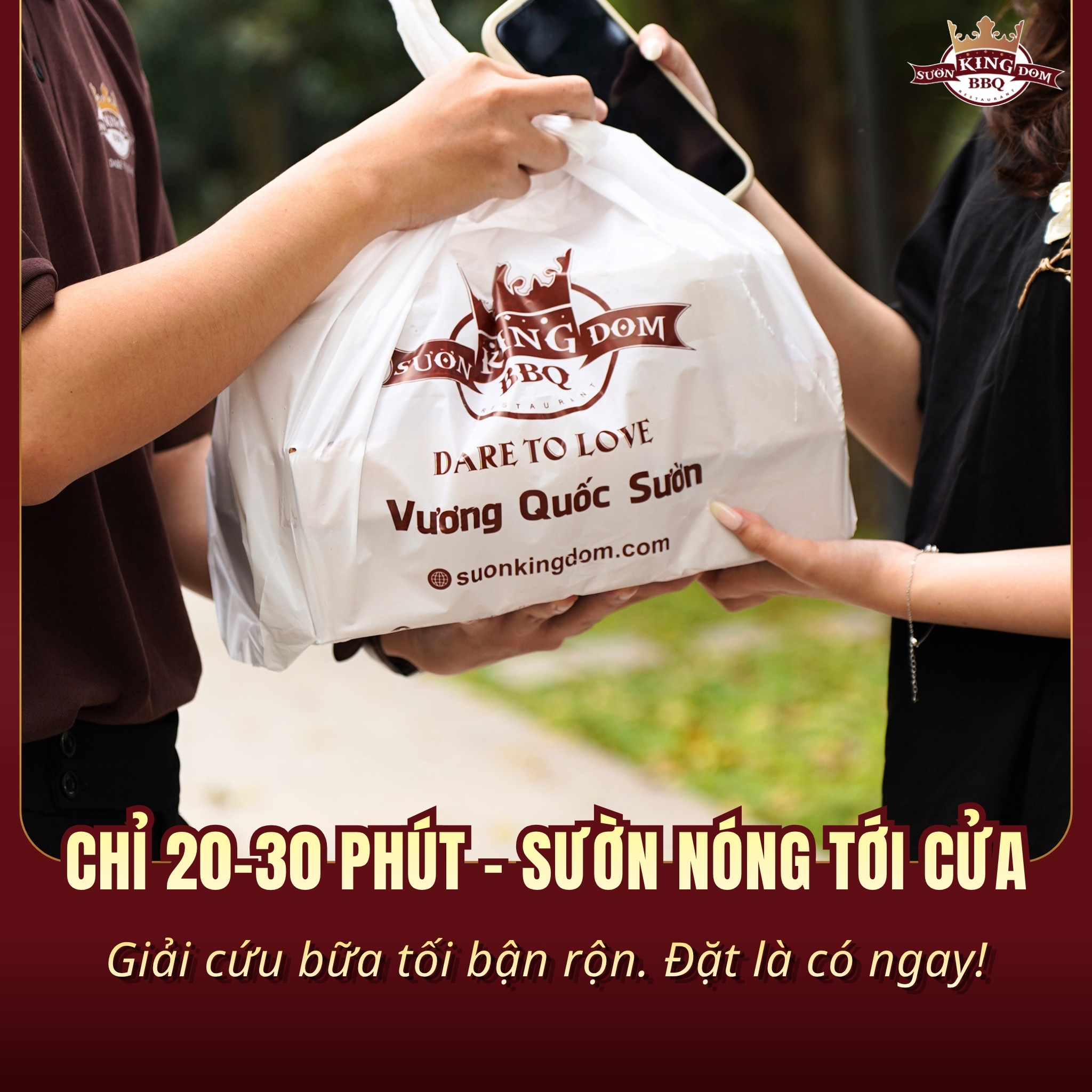 Sườn Kingdom chú trọng dịch vụ giao hàng nhanh chóng và đóng gói cẩn thận. Các combo đa dạng từ 169k đến 579k giúp tiết kiệm chi phí và phù hợp cho nhiều nhóm khách. Ngoài ra, cơ sở Trung Kính còn hỗ trợ freeship trong bán kính 5km cho đơn hàng đủ điều kiện, đáp ứng tốt nhu cầu ăn tại chỗ hoặc đặt ship.