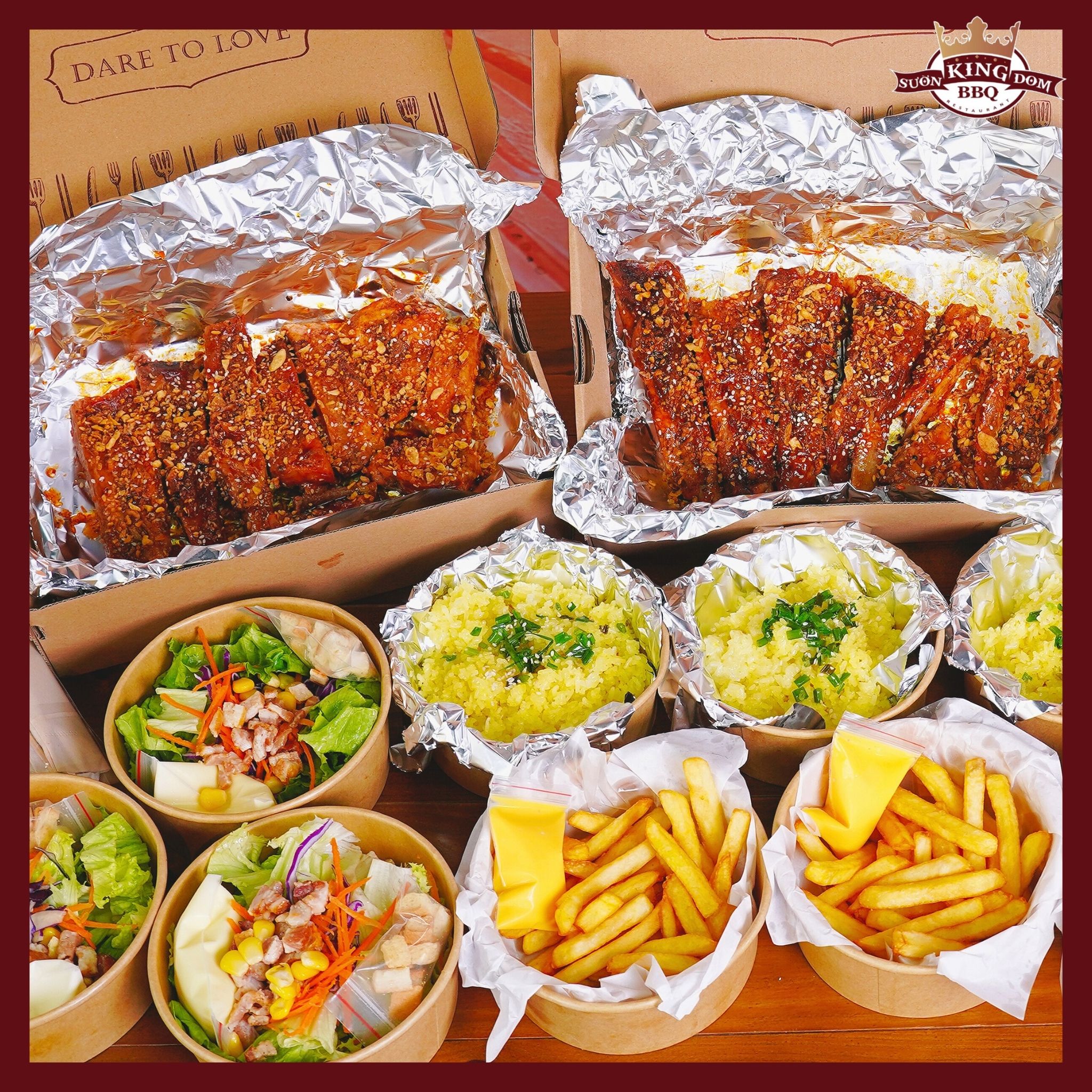 Combo Best Seller của Sườn Kingdom Vins: Khách hàng của Sườn Kingdom quanh khu vực Vins hầu như là các gia đình đông người, muốn thay đổi khẩu vị cho bữa tối nên thường sẽ chọn một combo vừa đủ món, vừa đủ 3 vị sườn hot hit như combo King 3 vị sườn của Sườn Kingdom với giá chỉ từ #888k. Combo King còn được phục vụ kèm 2 phần khoai tây chiên sốt phô mai béo ngậy và 2 phần salad Caesar tươi mát, giúp cân bằng hương vị một cách hoàn hảo.