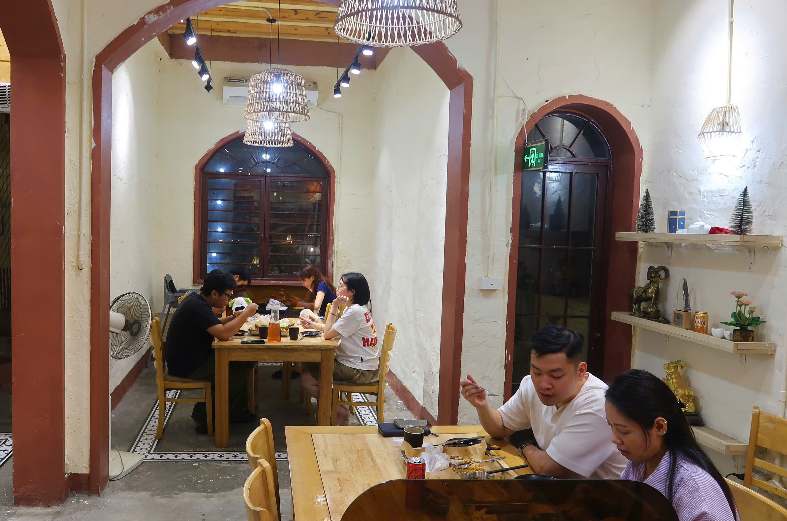 Bước vào bên trong, không gian được thiết kế với tông màu ấm, bàn ghế gỗ và ánh sáng nhẹ nhàng tạo cảm giác gần gũi. Mỗi tầng được bố trí hợp lý cho nhiều nhu cầu: tầng 1 thích hợp cho nhóm nhỏ hoặc couple, tầng 2 và 3 có bàn dài cho nhóm gia đình, công ty hoặc tiệc sinh nhật. Không gian được giữ gìn sạch sẽ, có điều hòa và hệ thống đèn chiếu sáng hợp lý, giúp bữa ăn thêm thoải mái.