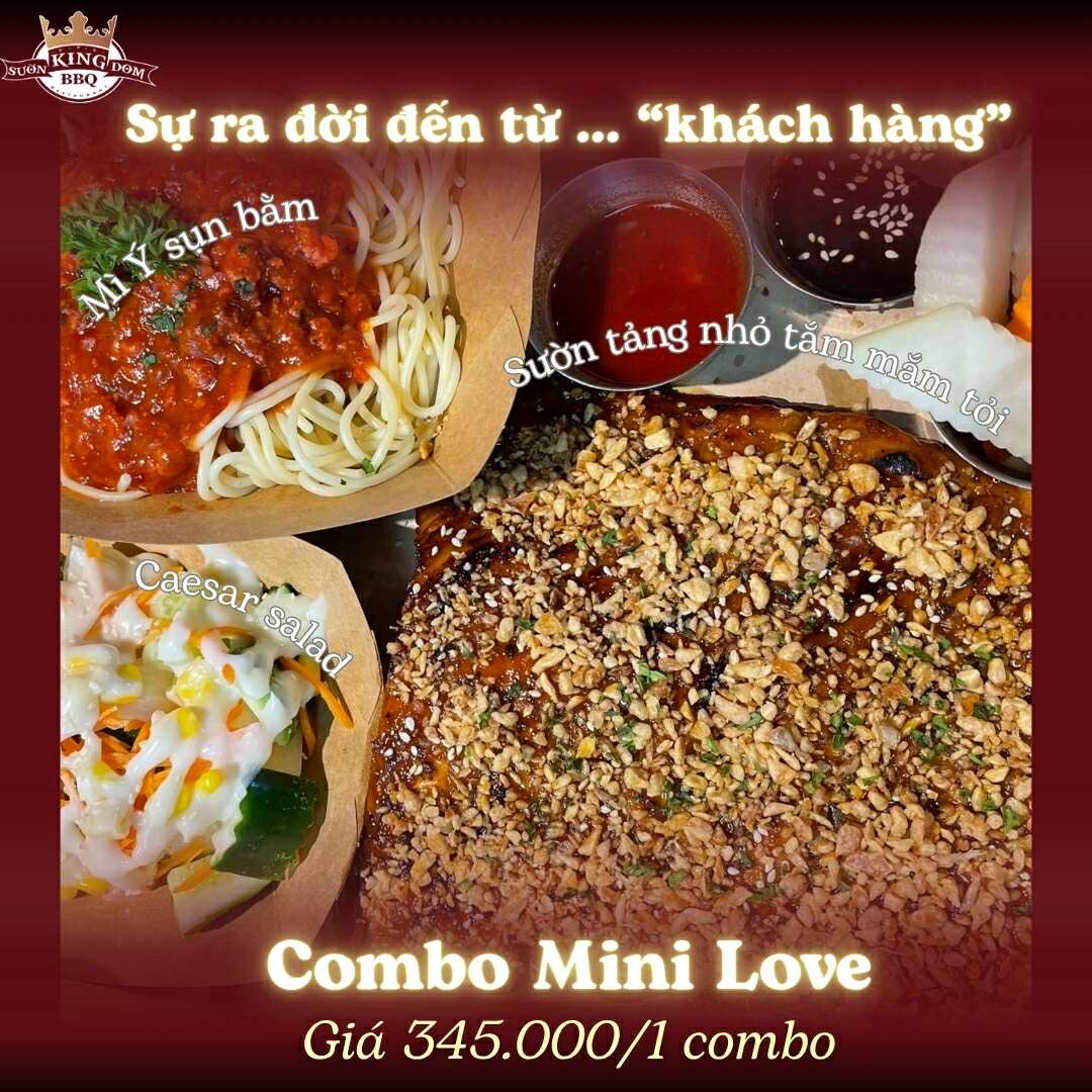1 fun fact đó là combo Mini Love được tạo nên từ chính phản hồi của những “Queenie” ruột nhà Sườn Kingdom. Ban đầu, menu của Sườn Kingdom chỉ có combo sườn nướng BBQ, kèm mì Ý sụn bằm và salad Caesar nhưng do khách hàng quá kết vị Sườn Mắm Tỏi, Sườn Kingdom đã nhận được hàng loạt yêu cầu đổi vị sườn nên chúng mình quyết định “ra lò” luôn combo Mini Love để khách hàng có nhiều sự lựa chọn hơn.