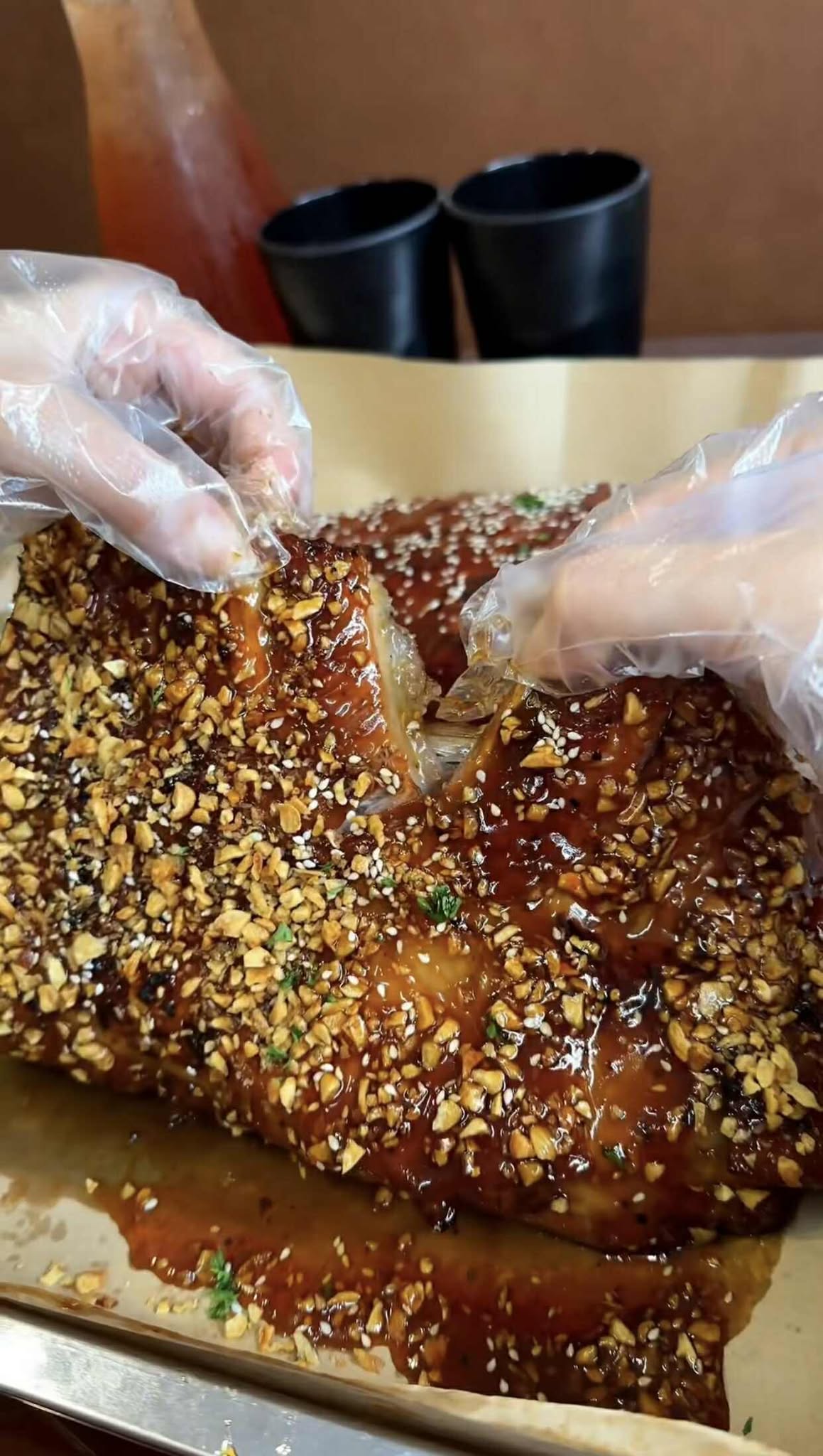 Nếu bạn muốn tìm một trải nghiệm mới mẻ bên cạnh những món ăn lâu đời, thì sườn mắm tỏi chính là lựa chọn đáng thử. Từng miếng sườn được nướng chậm bên ngoài nên vẫn giữ được độ mềm ngọt bên trong, thấm đều trong lớp sốt mắm sánh vàng óng. Bên trên rắc thêm tỏi phi giòn rụm, vừa thơm lừng vừa tạo nên hương vị khó cưỡng. Khác với sự thanh tao của phở hay bún chả, Sườn mắm tỏi mang lại cảm giác đậm đà, “bùng vị” ngay từ miếng đầu tiên.